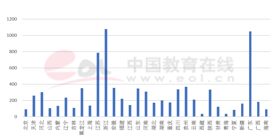 獨(dú)立法人合作辦學(xué)機(jī)構(gòu)分省招生計(jì)劃投放主要在辦學(xué)所在地,其中上海紐約大學(xué)不設(shè)分省招生計(jì)劃。根據(jù)對2019年招生計(jì)劃人數(shù)在250人以上的6所獨(dú)立法人合作辦學(xué)機(jī)構(gòu)的分省招生計(jì)劃進(jìn)行統(tǒng)計(jì),招生人數(shù)最多的三個(gè)省份依次為浙江、廣東和江蘇,其中浙江和廣東的招生計(jì)劃數(shù)超過1000人,招生計(jì)劃數(shù)超過300人的省份有江蘇、貴州、安徽、黑龍江、山東、四川、陜西、河南、河北。