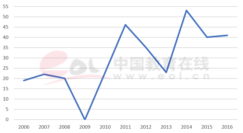 我國的中外合作辦學(xué)得到國家政策的大力支持,自1995年《中外合作辦學(xué)暫行規(guī)定》發(fā)布以來,中外合作辦學(xué)機(jī)構(gòu)和項(xiàng)目實(shí)現(xiàn)“快速生長”。相關(guān)統(tǒng)計(jì)數(shù)據(jù)顯示,1995年全國中外合作辦學(xué)項(xiàng)目只有71個(gè),經(jīng)過20余年發(fā)展歷程,中外合作辦學(xué)取得了長足發(fā)展。