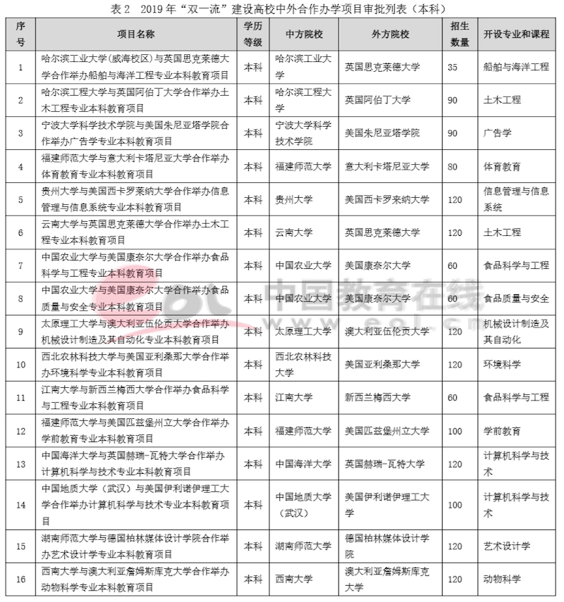 2.2019年“雙一流”建設(shè)高校中外合作辦學(xué)項(xiàng)目審批列表(本科))