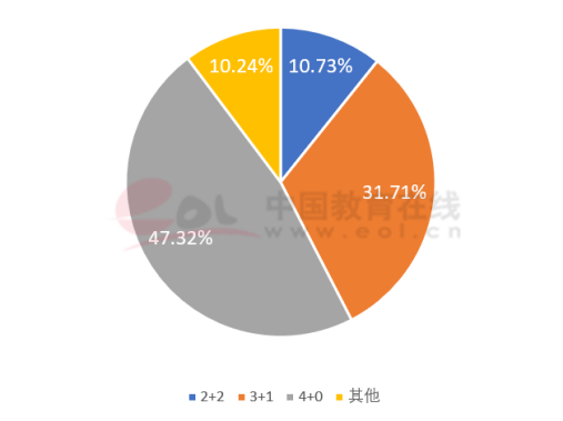 我國“雙一流”建設(shè)高校中外合作辦學(xué)項(xiàng)目的學(xué)制一般為4年,大概可以分為三種情況:2+2(國內(nèi)2年,國外2年)、3+1(國內(nèi)3年,國外1年)、4+0(國內(nèi)4年,不出國)。其中,以“4+0”和“3+1”形式最多,占到80%左右。