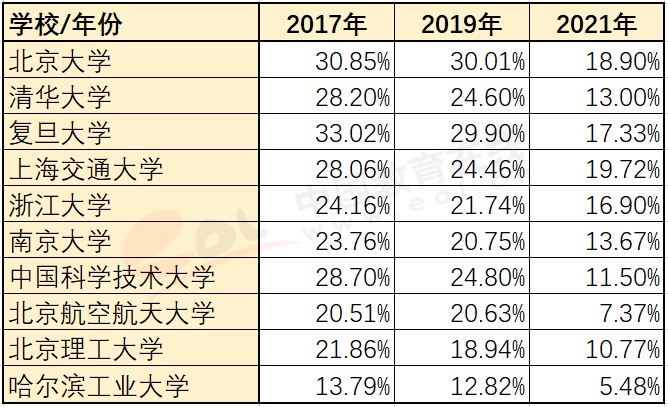 對于原因,門戶開放報告負責(zé)人分析主要是因為疫情影響出國,但美國高校認為是10043號總體令等政策限制問題,即對中國赴美國際學(xué)生就讀敏感專業(yè)等進行一系列的簽證限制,但美國務(wù)院否定了這一說法,認為受這一政策影響的不足2%。其實美國的限制還是很明顯的,中國一些頂尖綜合類和理工類高校本科畢業(yè)生,出國留學(xué)人數(shù)已經(jīng)出現(xiàn)大幅下降,甚至腰斬(見表3)。