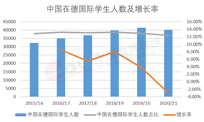 由于德國公立大學(xué)免費入讀,加之自2020年起德國所有的高等院校可接受中國會考和高考的成績,中國學(xué)生高中畢業(yè)后可直接申請德國的本科,因此越來越受到中國留學(xué)生的青睞。根據(jù)德國學(xué)術(shù)交流中心(DAAD)數(shù)據(jù)顯示,中國近年來一直是德國國際學(xué)生最大生源國,占比始終保持在12%-14%之間。即使在疫情期間,中國在德國際學(xué)生人數(shù)也基本保持穩(wěn)定,沒有出現(xiàn)大幅下降。