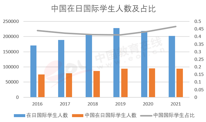 2.6 中國在日國際學(xué)生人數(shù)下降,占比上升