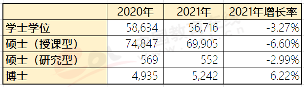 而在英國和澳大利亞學(xué)習(xí)的中國國際學(xué)生以授課型碩士和本科生為主,授課型碩士人數(shù)多于本科生(見表6)。2021年,在澳大利亞就讀博士的中國學(xué)生人數(shù)逆勢增長(見表6)。