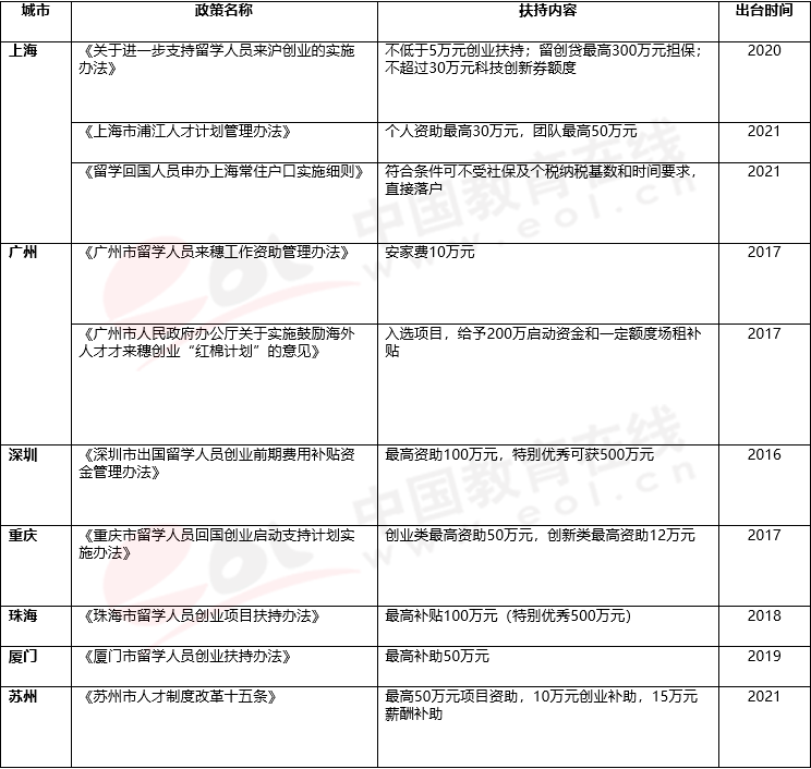3、各省市政府出臺專項政策,爭搶高層次海外人才。