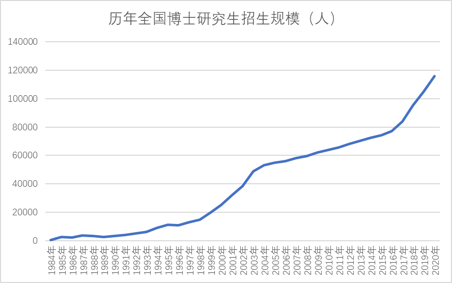 2021年全國(guó)教育事業(yè)發(fā)展統(tǒng)計(jì)公報(bào)披露,全年研究生招生117.65萬(wàn)人,比上年增加7萬(wàn)人,增長(zhǎng)6.32%;其中,博士生招收12.58萬(wàn)人,碩士生共招收105.07萬(wàn)人,碩士研究生招生量約占總量的90%。