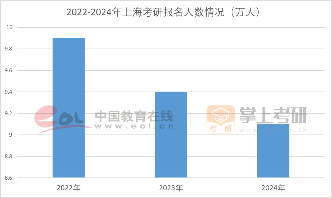2024年報名在上海參加考研的人數(shù)為9.1萬人,較上一年減少了三千人,并且已經(jīng)是連續(xù)兩年下降。