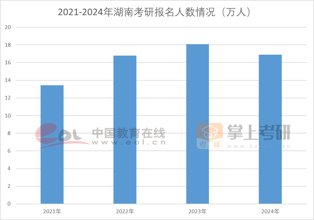 湖南2024年研考報考總?cè)藬?shù)16.89萬,相比上年減少1.19萬,降幅6.6%。