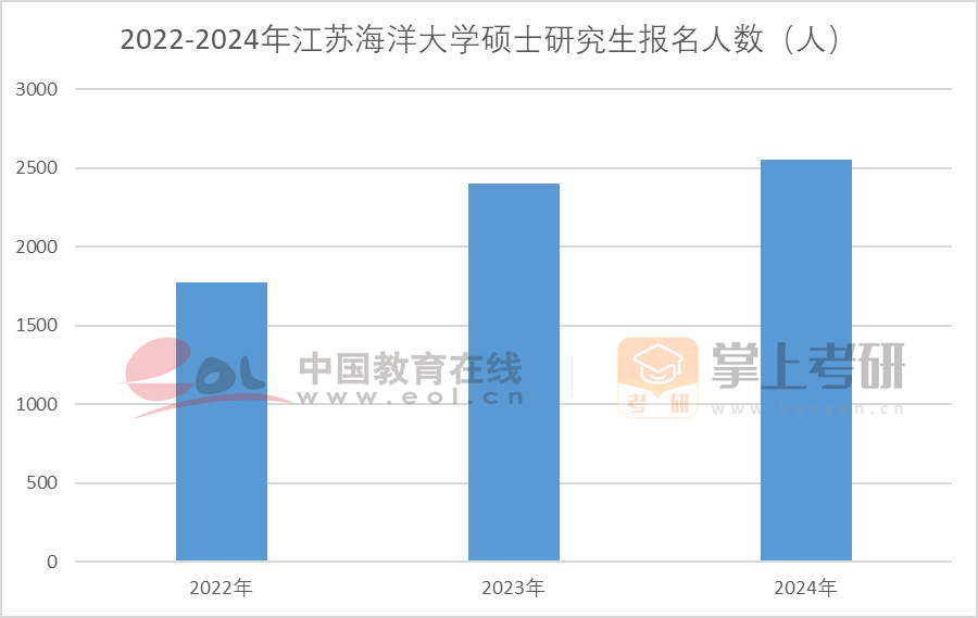 2024年江蘇海洋大學研究生報考人數(shù)2556人,較上年增長6.3%。近年,江蘇海洋大學考研報名人數(shù)連續(xù)增長,2023年考研報名人數(shù)增幅達到了35.79%。