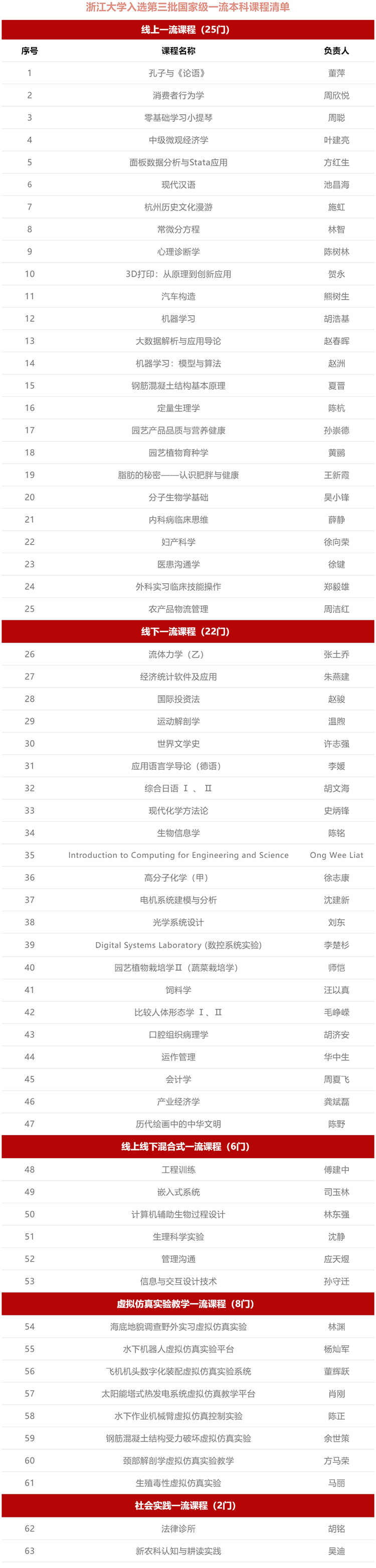 全國第一!浙江大學63門課程入選第三批國家級一流本科課程