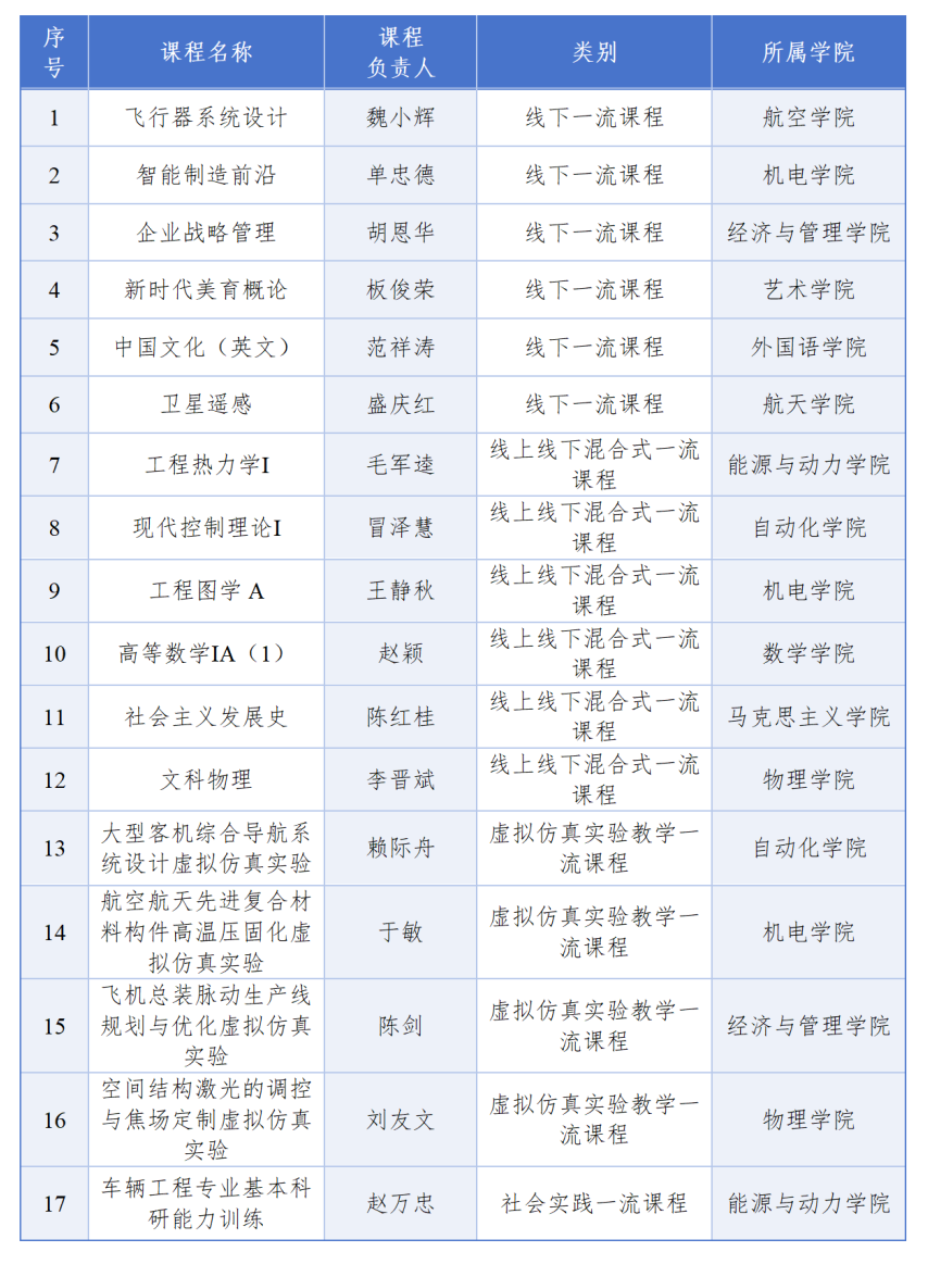 南京航空航天大學(xué)17門課程入選第三批國(guó)家級(jí)一流本科課程