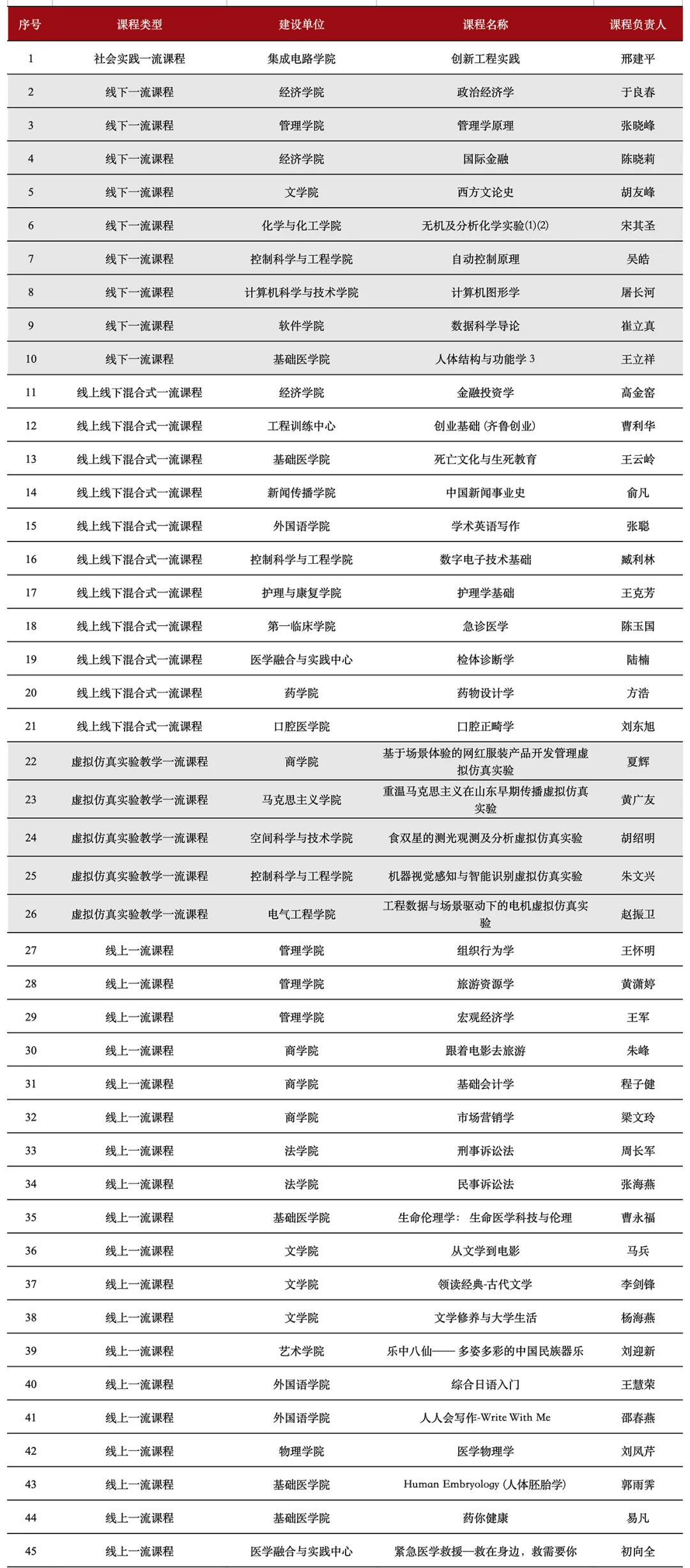 山東大學(xué)第一批國家級一流本科課程