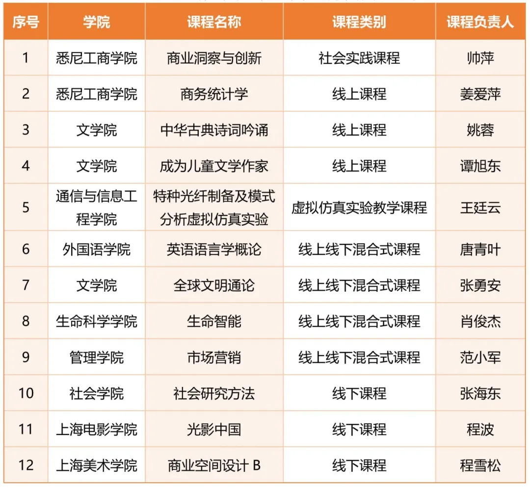 上海大學(xué)12門課程入選第三批國家級一流本科課程