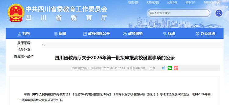 2月11日,四川省教育廳發(fā)布《關(guān)于2026年第一批擬申報高校設置事項的公示》。根據(jù)《中華人民共和國高等教育法》《普通本科學校設置暫行規(guī)定》《高等職業(yè)學校設置標準(暫行)》等法律法規(guī)及政策規(guī)定,現(xiàn)將2026年第一批擬申報高校設置事項公示。其中,以川北醫(yī)學院為基礎,擬設置川北醫(yī)科大學。