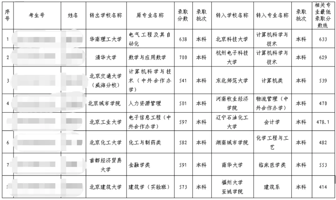 更早前,2023年7月10日,北京市教育委員會也曾公布了一批跨省轉(zhuǎn)學(xué)公告,均為降格轉(zhuǎn)學(xué):有人從北京航空航天大學(xué)自動化專業(yè)轉(zhuǎn)到了西南大學(xué)統(tǒng)計學(xué)專業(yè),有人從北京外國語大學(xué)外交學(xué)專業(yè)轉(zhuǎn)到了沈陽工業(yè)大學(xué)英語專業(yè),還有人從北京理工大學(xué)智能無人系統(tǒng)專業(yè)轉(zhuǎn)到了江蘇師范大學(xué)電子信息工程專業(yè)。