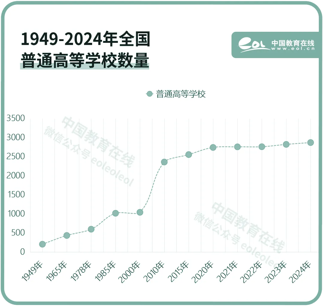 2024年,我國(guó)普通高等學(xué)校數(shù)量達(dá)到2868所,比1949年增長(zhǎng)14倍。