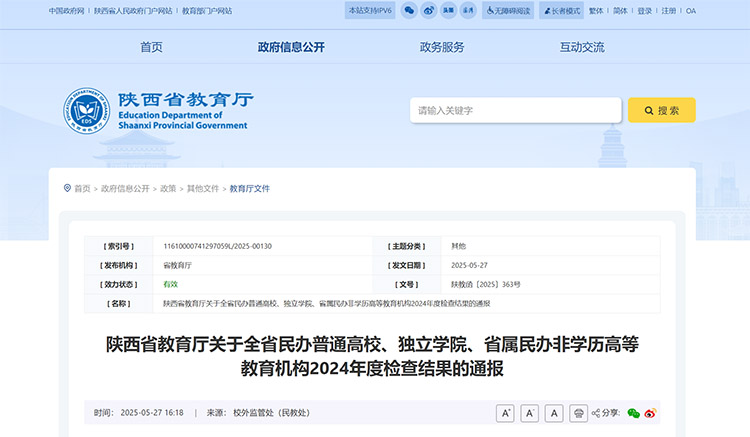 近日,陜西省教育廳發(fā)布關(guān)于全省民辦普通高校、獨立學(xué)院、省屬民辦非學(xué)歷高等教育機構(gòu)2024年度檢查結(jié)果的通報。