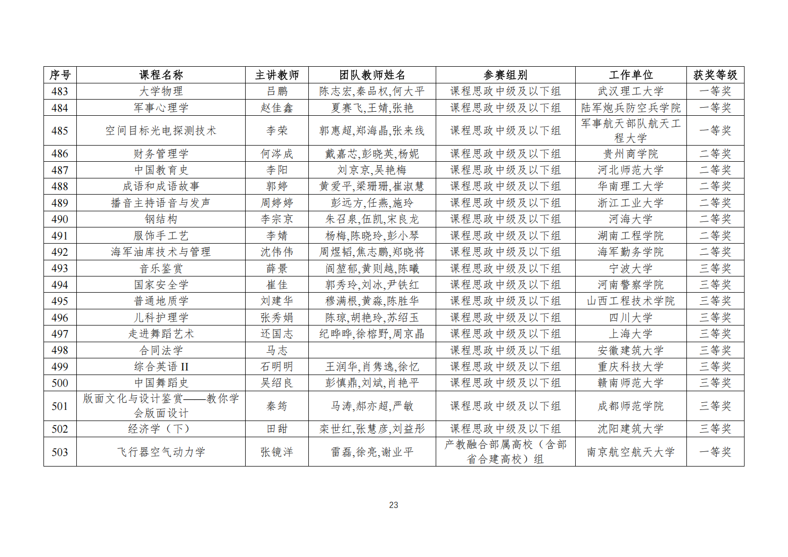 關(guān)于公布第五屆全國高校教師教學(xué)創(chuàng)新大賽獲獎(jiǎng)名單的通知