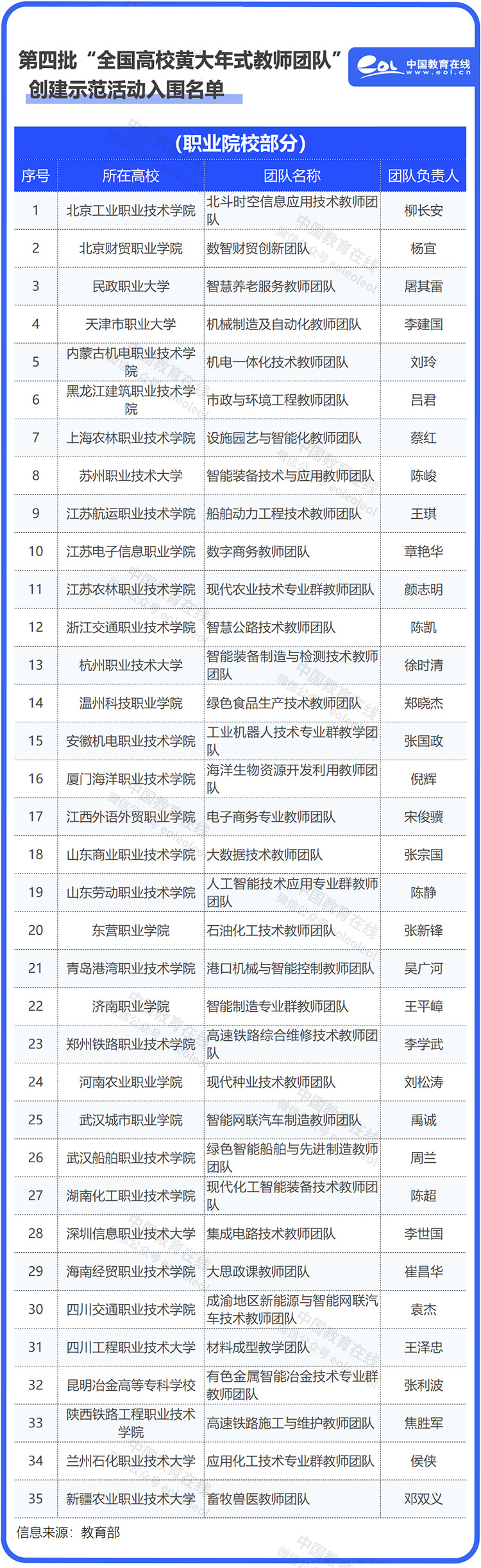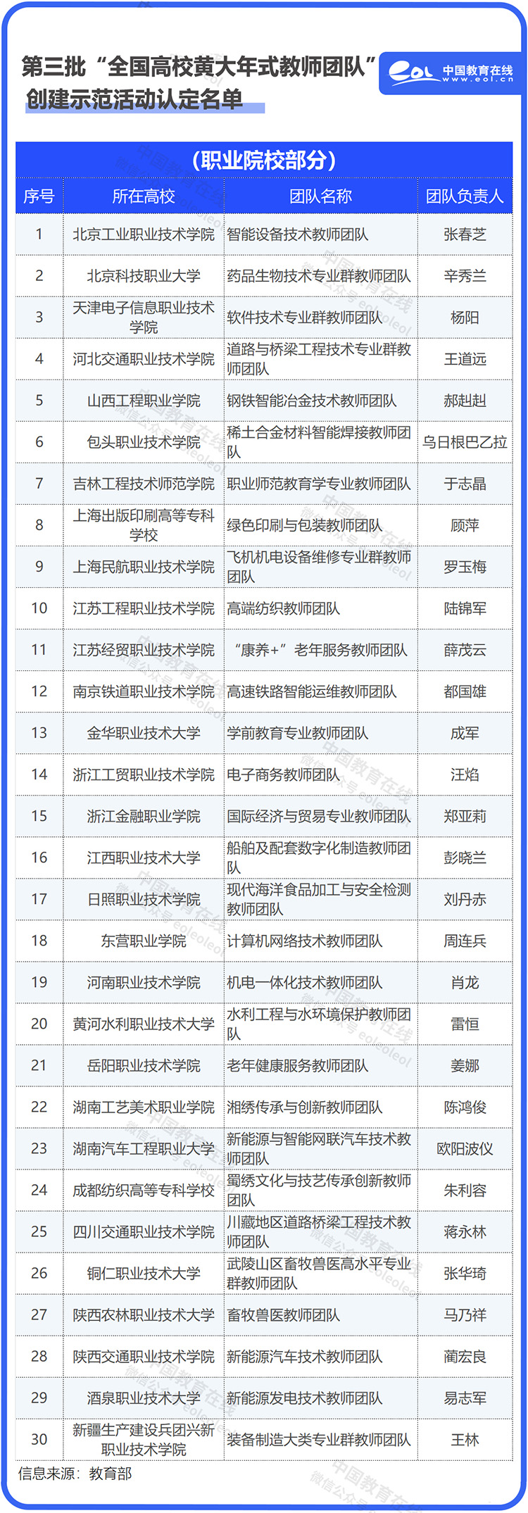 據(jù)統(tǒng)計(jì),第三批認(rèn)定名單中有30個(gè)教師團(tuán)隊(duì)來自職業(yè)院校,第四批入圍名單有35個(gè)團(tuán)隊(duì)來自職業(yè)院校。