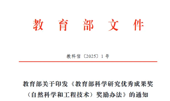 教育部印發(fā)《教育部科學(xué)研究優(yōu)秀成果獎(jiǎng) (自然科學(xué)和工程技術(shù))獎(jiǎng)勵(lì)辦法》