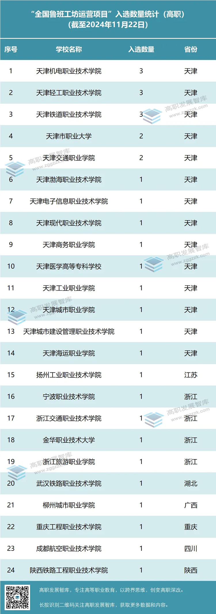 據(jù)高職發(fā)展智庫統(tǒng)計,截至2024年11月22日,共有34個項目被中國教育國際交流協(xié)會認定為魯班工坊運營項目。其中,全國共有24所高職院校的32個項目入選。