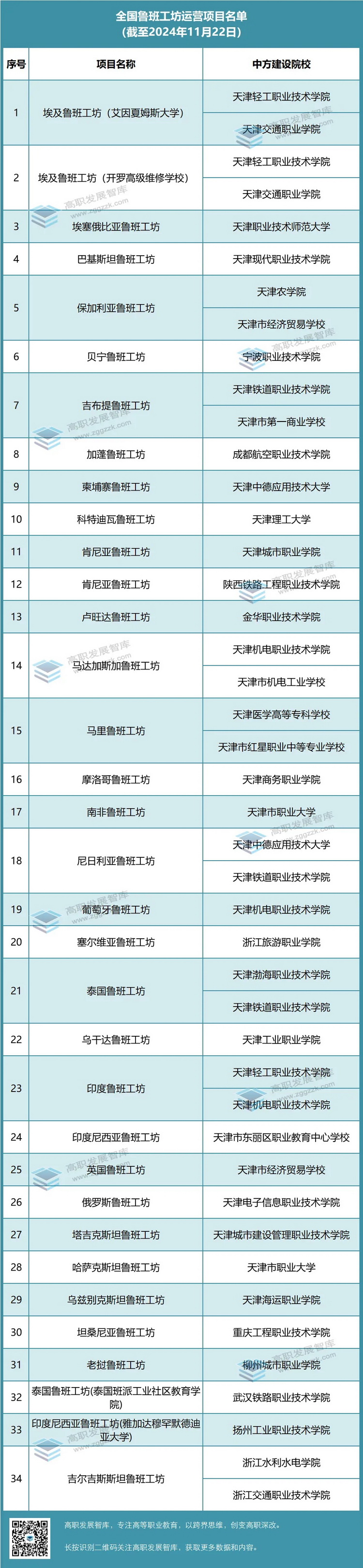 34個魯班工坊運營項目詳細名單: