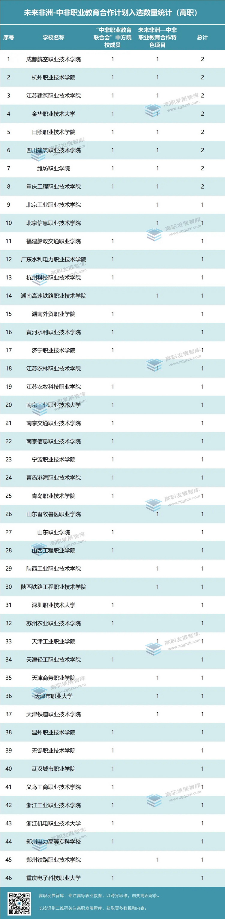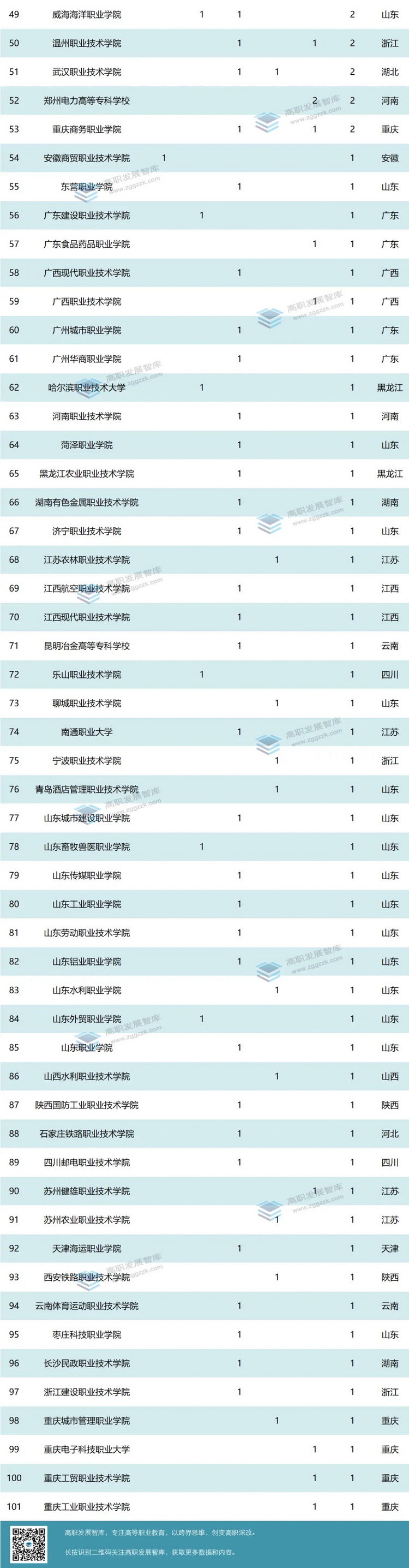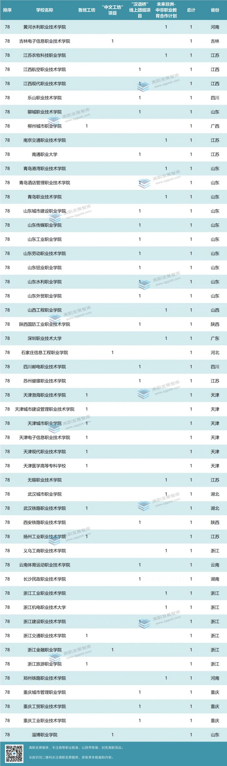 各高職院校入選數(shù)量統(tǒng)計如下: