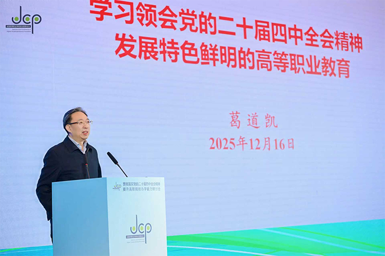 2025年12月16-17日,全國高等職業(yè)學(xué)校校長聯(lián)席會議在四川成都圍繞“新起點(diǎn) 新使命新生態(tài)——開啟職教高質(zhì)量發(fā)展新階段,譜寫教育強(qiáng)國建設(shè)新篇章”召開“貫徹落實黨的二十屆四中全會精神 提升高職院校辦學(xué)能力”研討會。中國高等教育學(xué)會副會長葛道凱作主旨報告。四川省教育廳二級巡視員陸衛(wèi)江、會議承辦單位成都工貿(mào)職業(yè)技術(shù)學(xué)院黨委書記王濤分別致辭。會議由全國高等職業(yè)學(xué)校校長聯(lián)席會議主席張慧波主持。