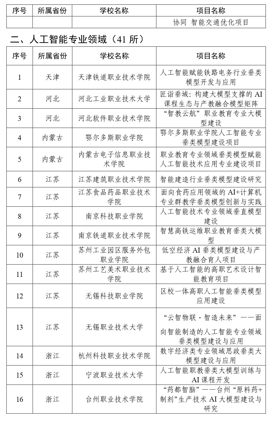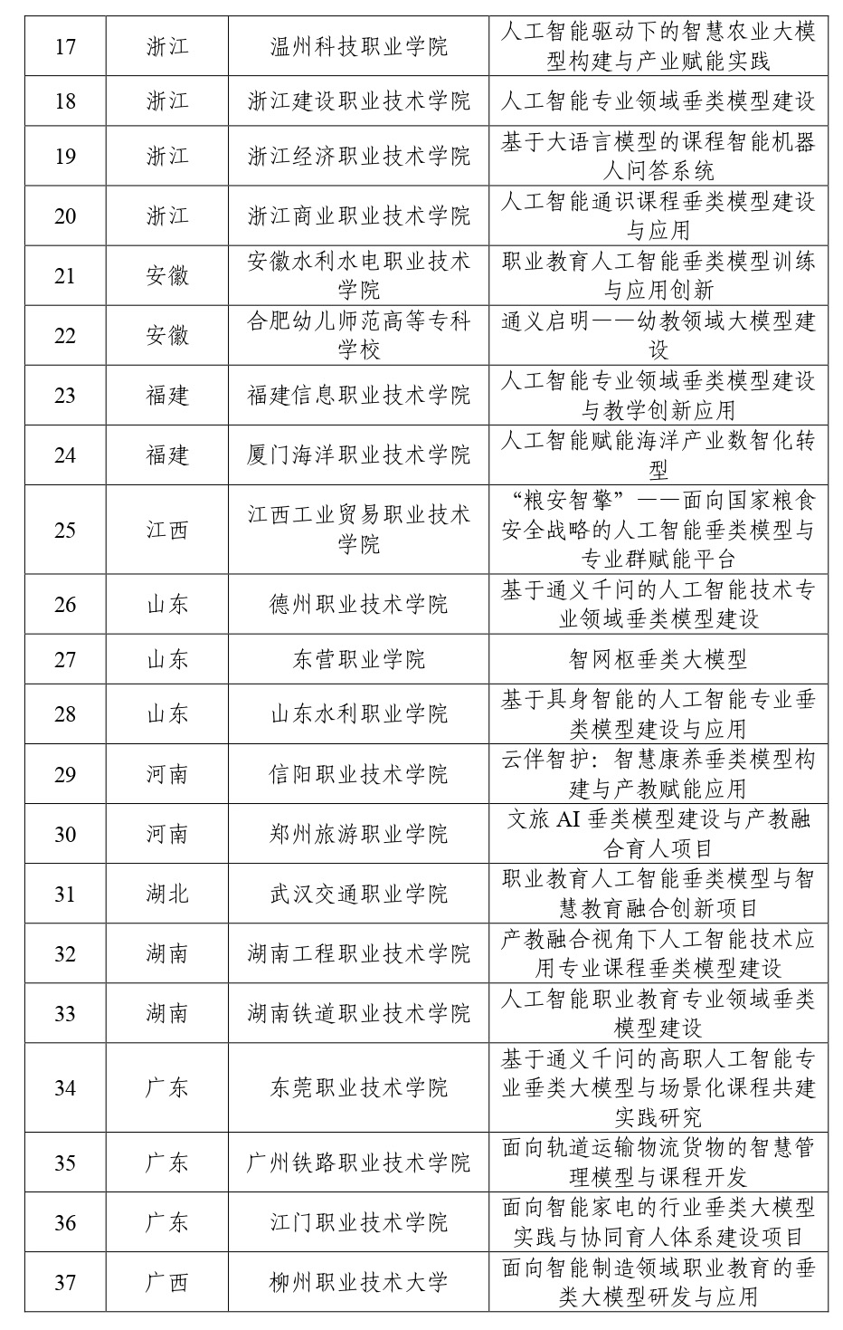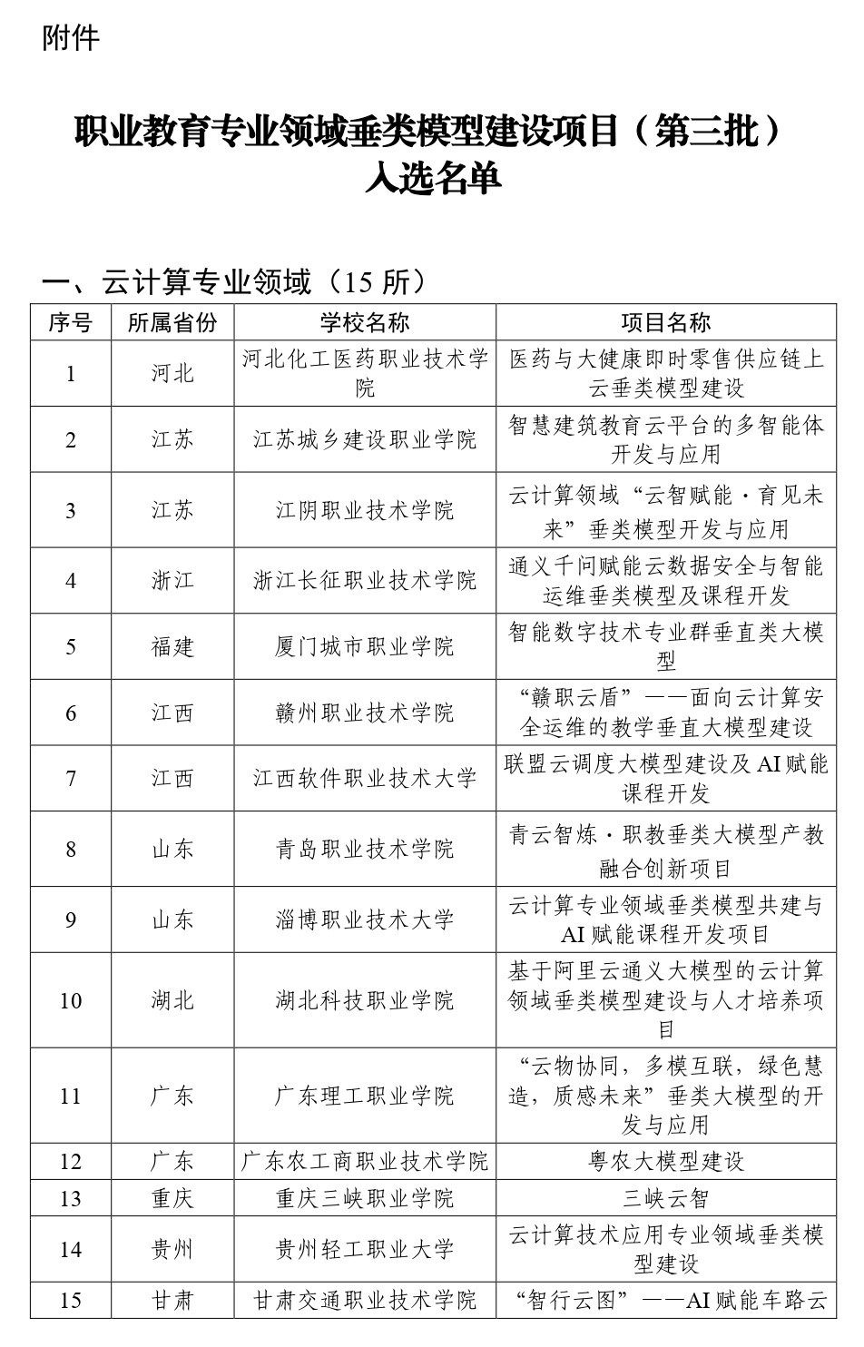 第三批職業(yè)教育專業(yè)領(lǐng)域垂類模型建設(shè)項(xiàng)目入選名單公布