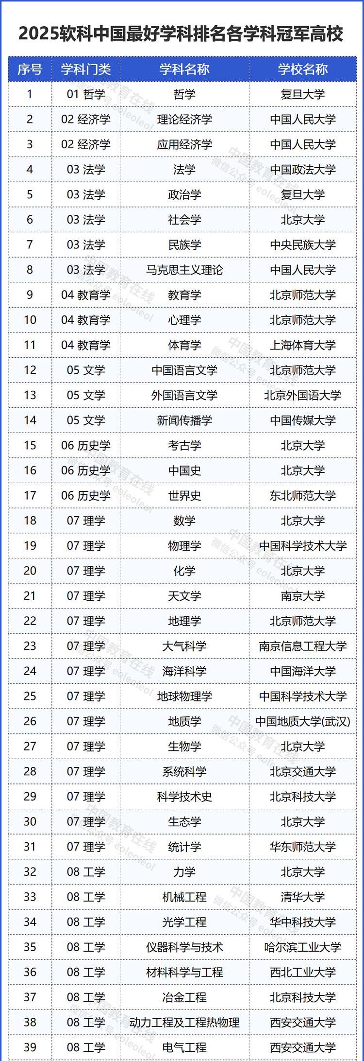 2025軟科中國最好學科排名發(fā)布,各學科冠軍高校名單出爐