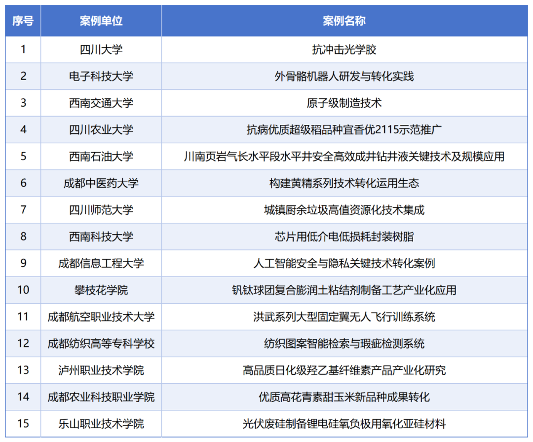 四川省高??萍汲晒D(zhuǎn)化典型案例清單